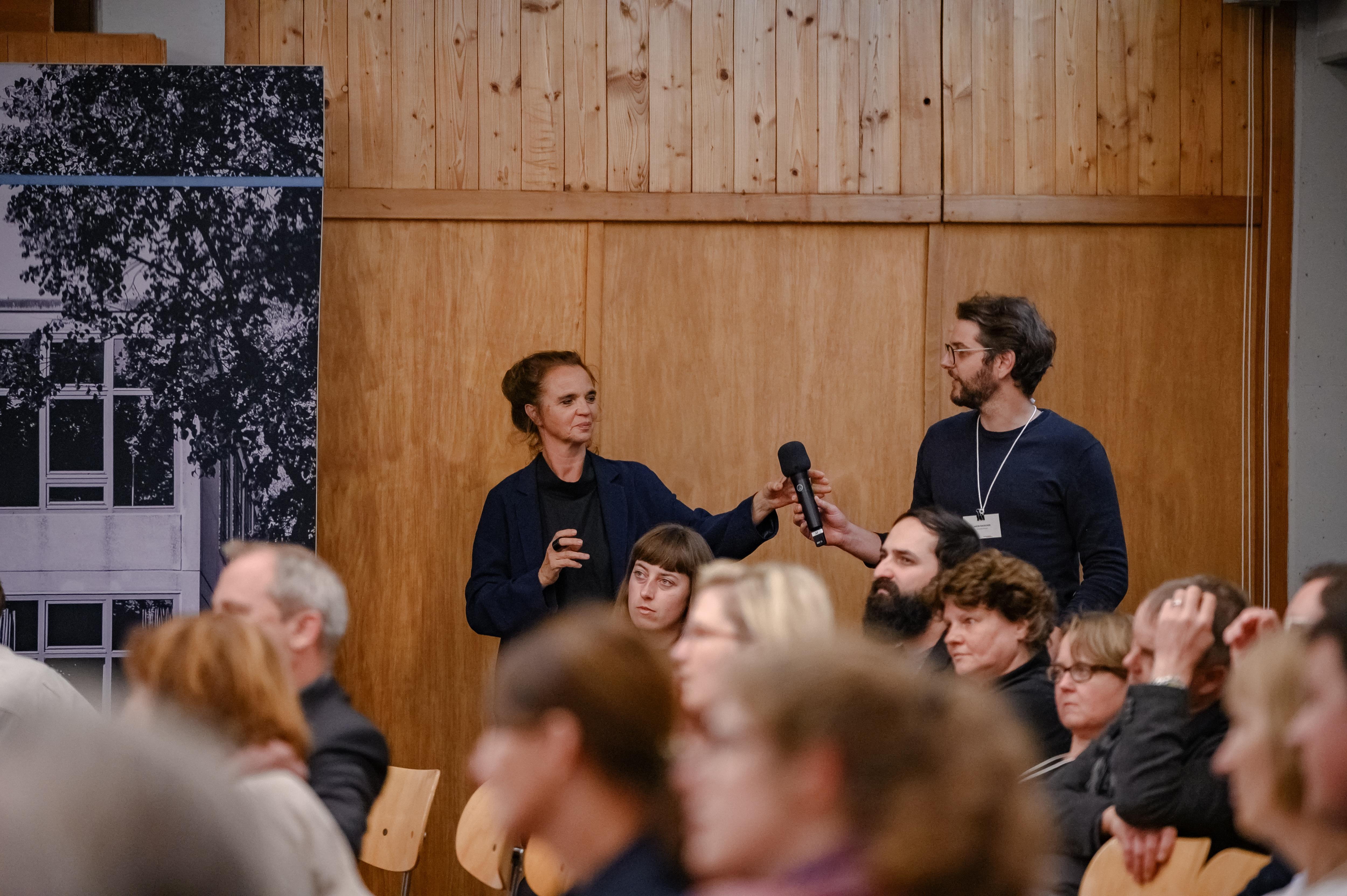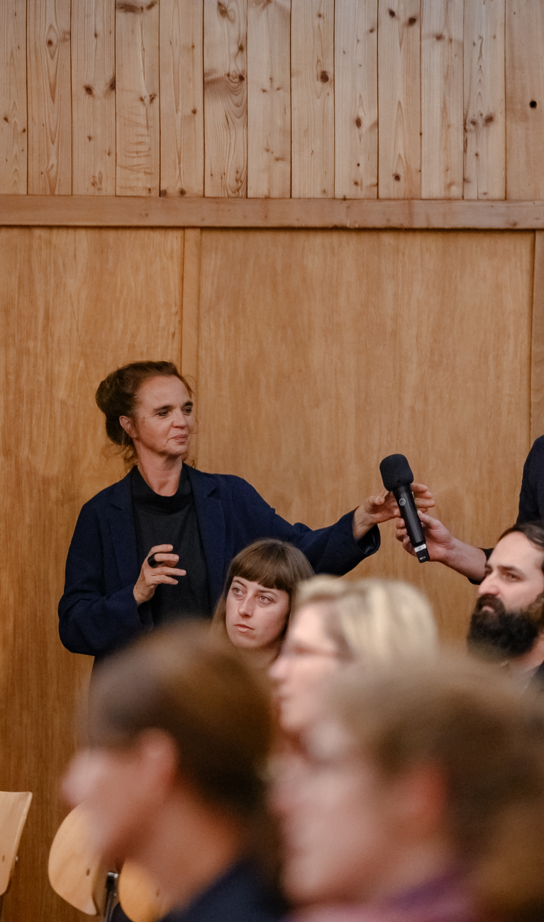 Bildinformation: Professorin Ute Meyer bei der internationalen Konferenz Transforming Peripheries an der HfG in Ulm. /Foto: urbanes.land/Hannes Kutza