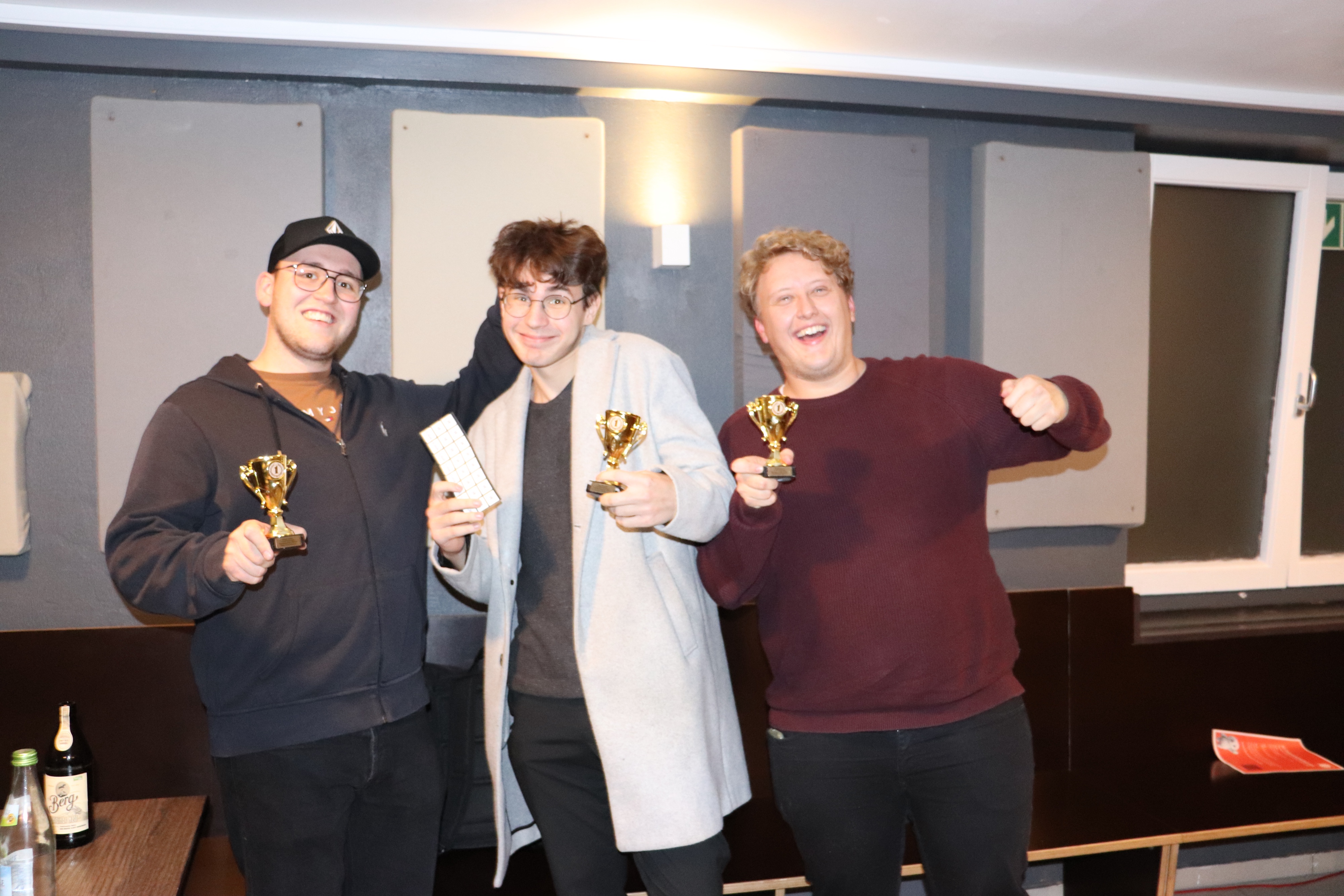 Als Gewinner des Abends ging das Team „KIneahnung“ mit Jonas Fischer (Energie-Ingenieurwesen, 1. Semester), Timo Högg (Medizinische Biotechnologie, 1. Semester) und Jens Schneider (Bauingenieurwesen, 1. Semester) hervor. Martin Frank lobt insbesondere die gute Zusammenarbeit des Teams: „Sich in kurzer Zeit auf ein Tool zu einigen und alle Bewertungskriterien der Aufgabenstellung zu berücksichtigen, erfordert ziemlich viel Fokus – auch in einem informelleren Setting wie bei der Werkstatt Night.“ Die Studierenden durften sich über einen Getränke-Gutschein der VS sowie „echte“ Gewinner-Pokale freuen.